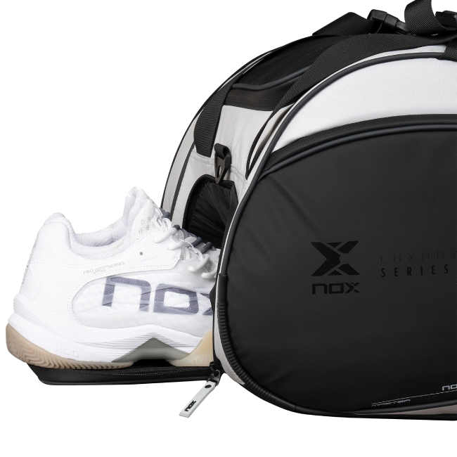 Atraskite naują padel stelažų krepšį LUXURY MASTER, sukurtą iš geriausių tekstilės ir techninių medžiagų, kad sumažintumėte svorį ir padidintumėte atsparumą, siūlantį puikų stiliaus, funkcionalumo ir ilgaamžiškumo derinį. Juodos/baltos spalvos.