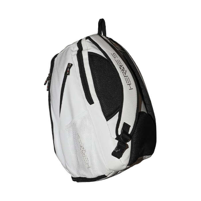 Sportinė padelio kuprinė Heroes Gravity White 2025, pagaminta iš sintetinės odos, pasižyminti moderniu ir funkcionaliu dizainu.