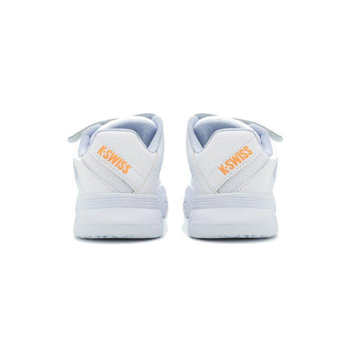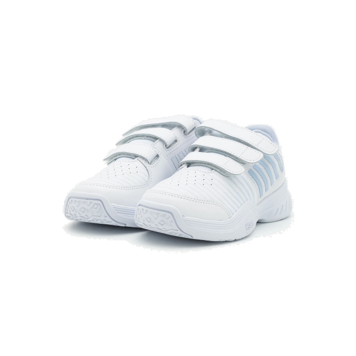 K-SWISS COURT EXPRESS Strap teniso batai vaikams pasižymi patvarumu ir komfortu. Baltos spalvos batų dizainas pritaikytas įvairioms teniso aikštelių dangoms, o Omni padas užtikrina gerą sukibimą. Tvirtas viršus ir stabilus padas suteikia optimalų palaikymą bei ilgaamžiškumą žaidžiant.