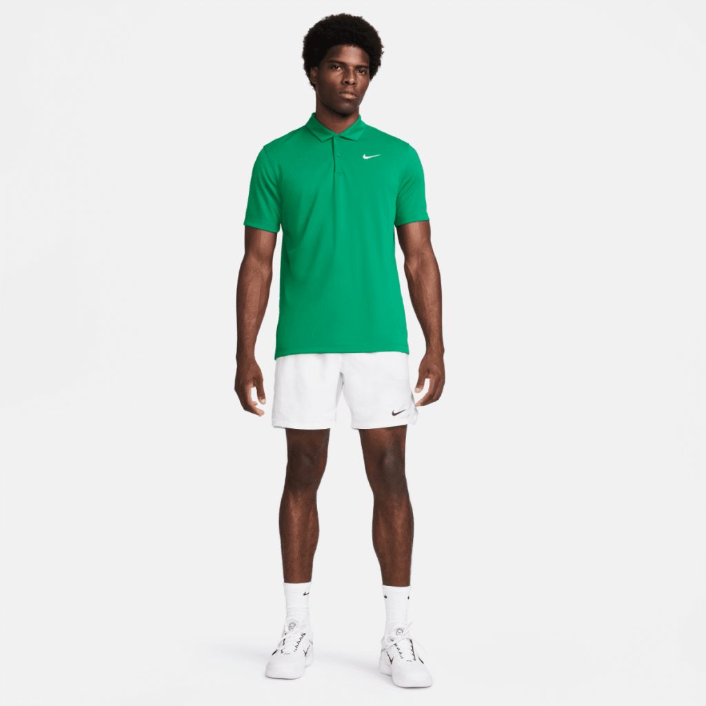Nike Court Dri-FIT Polo, pagamintas iš minkšto megzto audinio, pagamintas iš 100 % perdirbto poliesterio pluošto, yra klasikinės išvaizdos, prakaitą sugeriantis audinys.